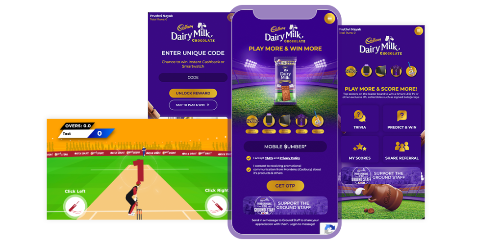 To achieve this, we created ‘Play More & Score More’, a platform where fans could take part in daily cricket-based Trivia Quizzes, and Predict and Win options during live matches, placing Cadbury at the centre of the action. Repeat purchase was driven by collecting ‘Runs’ for the chance to win a range of aspirational prizes. Either through purchasing special Cadbury packs, participating in games, trivia or sending messages of support to the IPL groundsmen.