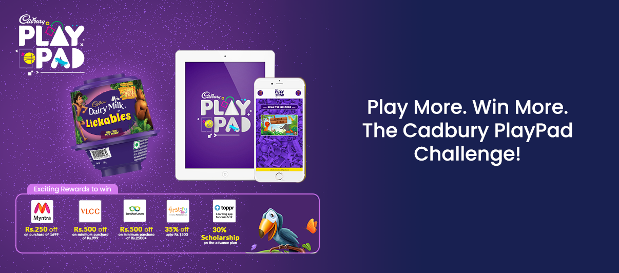 Our involvement in Cadbury Play Pad was to create a range of offers that would drive both app download (in the form of cash back) and usage. Creating an additional value of layer to drive game play via a range of exciting, relevant in-app rewards to encourage players to play different games within the Play Pad. These rewards included exclusive offers like Rs.250 off on Myntra, Rs.500 off at VLCC, Rs.500 off on lenskart.com, 35% off on firstcry.com and 30% scholarship on Toppr.